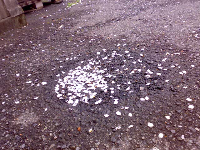 落ちた花弁も「掃除が大変」などと邪険にせず、これまた風情と思う余裕が欲しいなあ。自分も他人も。