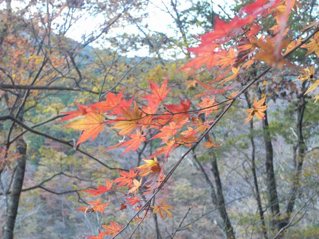 先週は映画に行く前の日に、自宅から暫く走った処まで紅葉を撮りに行って見ました。山深い此処ら辺はそろそろ終わり頃だったのと、だいぶ陽が傾いていた時間だったので楓の色合いを基準に露出を一段上げたら、空真っ白・・・;