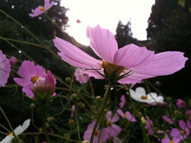 コスモスの花は群れて咲いている様子を見るとなんとも仄々した感じなんですが、一枚の花弁を良く視ると触れたら斬れそうな、薄刃といった感じですね。