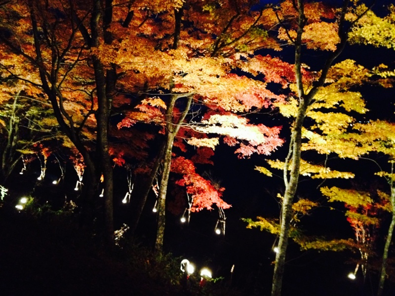 暗くなって湖畔で紅葉のライトアップをやってたんで(軽くお祭り的に)、腹ごなしに散歩してきました。