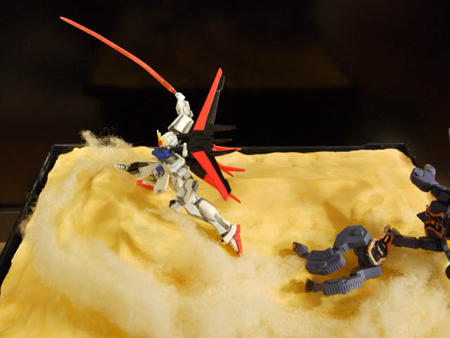 400円ガシャポン「MSフロンティア」の、エールストライクを使ったジオラマ。フォトコンテストがあり、写真の様にして応募してみました。結果は・・・本日発売のホビージャパン誌に!