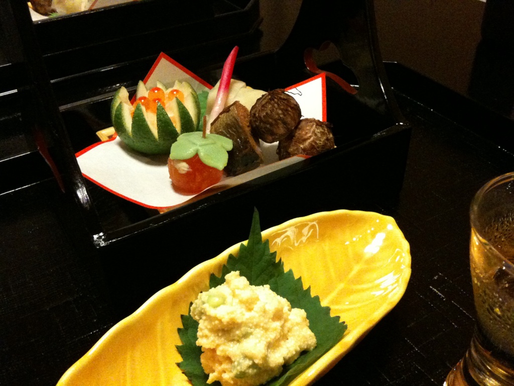 写真は旅館の料理の先付。御洒落且つ旨いっす。