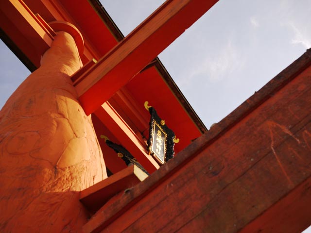 着いた直後は大鳥居も水の上だったんですが、境内と宝物館を観ている内に干潮になり、大鳥居の下まで歩いて行けました。この鳥居も他の建物も、地元や他の地域の方々により大事に保存・修復されていて、歴史と努力の重厚さに圧倒されます。
