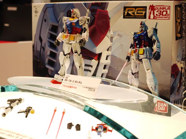 バンダイの今期注目作は何と云っても「RG(リアルグレード)1/144 RX-78-2ガンダム」でしょう!デザインは最新解釈の「お台場ガンダム」ですが、その緻密なパーツ分割と内部フレームによる可動がまた凄い。この大きさでこの精度、とビックリします。