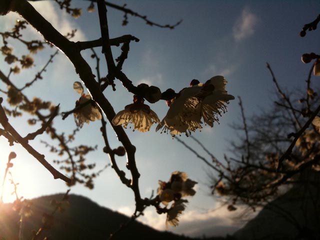 今が旬の白梅を、敢えて逆光でシルエットに・・・・・