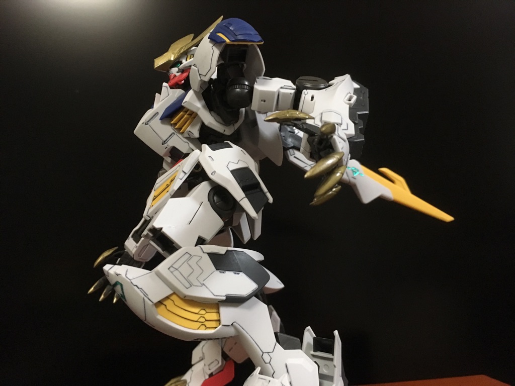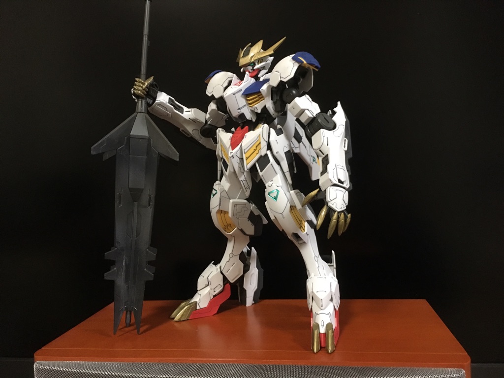 最終回放映から丁度1ヶ月、1/100バルバトスやっと完成!装甲は墨入れとトップコート、フレームは未塗装の例によって省力製作ですが、流石フルメカニクスは良く出来てます。
