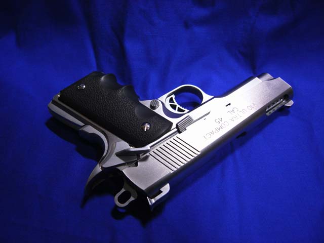 写真の銃(ガスガン)はスプリングフィールド・アーモリーの「V10ウルトラコンパクト」です。所謂1911シリーズのコンパクトモデル「オフィサーズ」系の派生ではあるんですが、威力を維持しつつ小さくまとめ、使い手の負担を軽減させる工夫があちこちに凝らされています。が、この手のモデルも色々な銃器会社から山程の種類が過去から現在まで発売されています。