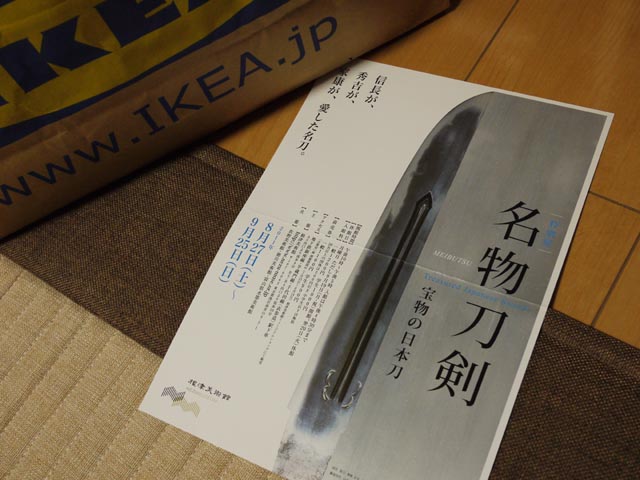 ラインナップはお題の通り“名物(享保名物帳)”中心の、遙か昔から高評価された貴重品ばかり。「正宗」も数振り並んだし、およそ千年前の「獅子王」や「三日月宗近」を間近で見られるとは・・・眼福眼福。