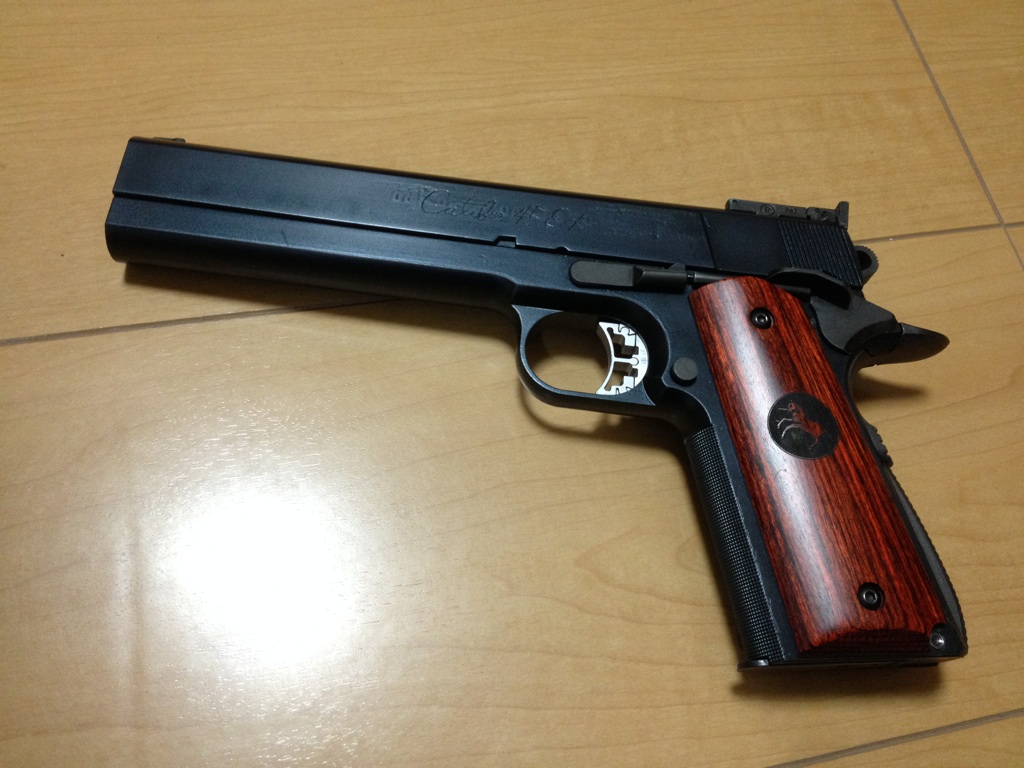 ハンマーは正直最も変えたかった所で、標準のスクエアタイプからエッグホールの黒に。メインスプリングハウジングもアーチ型にしました。んでアルタモントのウッドグリップと、昔と最近ちびちび買い揃えた物に交換。