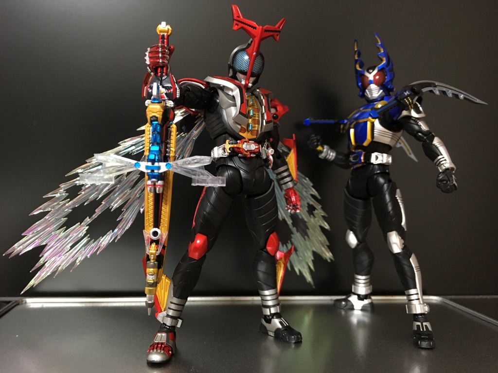 写真は何故かハイパーカブトとガタック。手元にある平成ライダーの立体物がコレだけなんで;